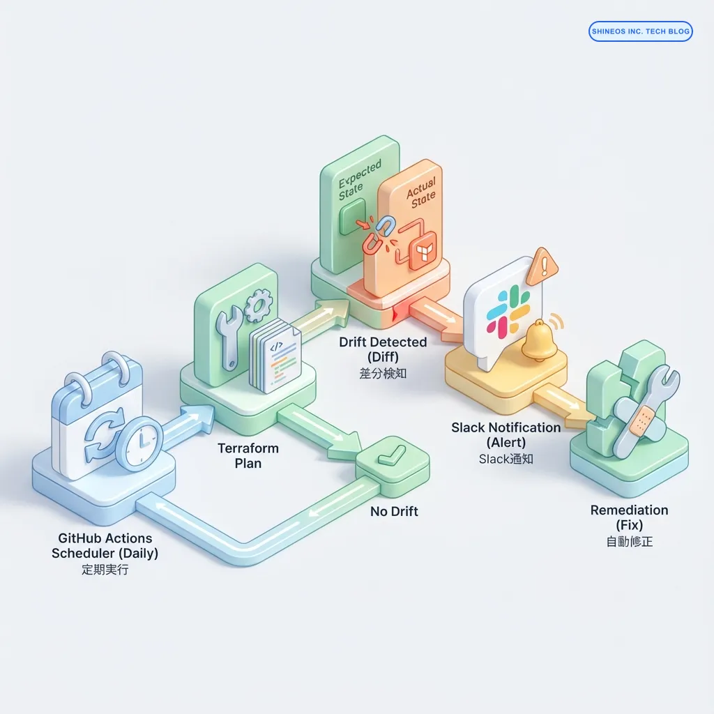 - 定期的なDrift Detection: GitHub Actionsで毎日